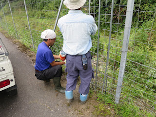 篠山の多くの集落では、シカ・イノシシの侵入防止のための金網柵が設置されています。