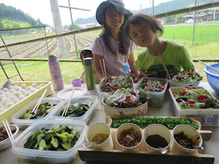 地域のお母さんの畑で採れた新鮮お野菜のサラダ