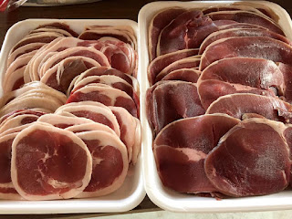 左が「冬」の猪肉、右が「夏」の猪肉です!