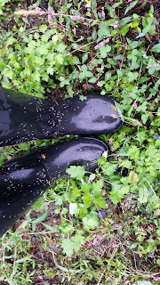 水辺ではゆっくりと歩くアカハライモリを発見!