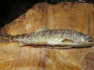 持参したBBQグリルの杉の板の上でもあまごを焼いてみました。
