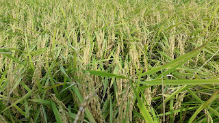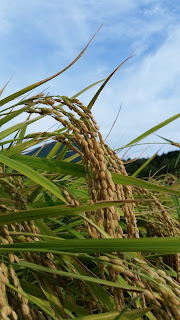 【猿結び米】もうすぐ稲刈り 稲刈り前にお米の様子を見に行ってきました! 黄金色に実った稲穂。 こうしてみるともう秋ですね! 私に向かって稲穂がコウベを垂れてくれてます(笑) ハハァ~m(__)m トンボが沢山飛んでいました。 まもなく収獲⤴⤴⤴ 美味しいお米が早く食べたいですね♪
