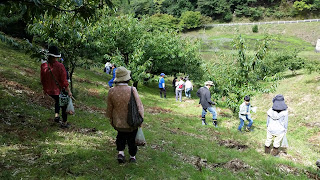 傾斜のある栗園へ。