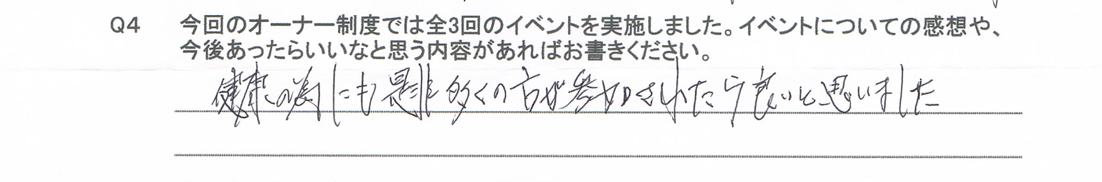 - 健康の為にも是非多くの方が参加されたら良いと思いました。(加古川市 辻泰史様)