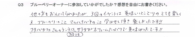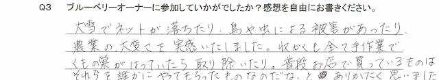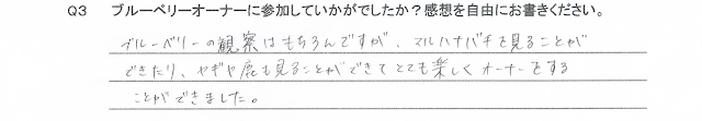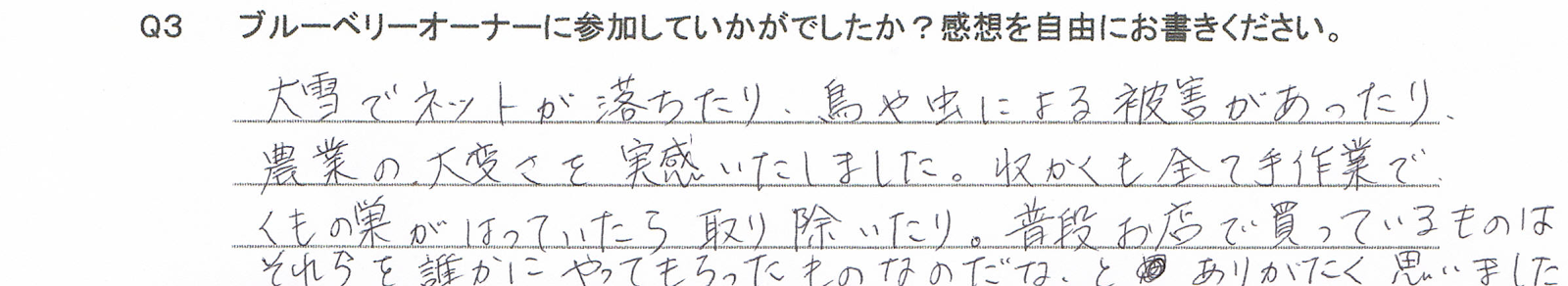 昨年のブルーベリーオーナー制度に参加された方のお声をご紹介します。