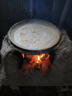 水に浸した状態で米ぬかを入れて火にかけ、