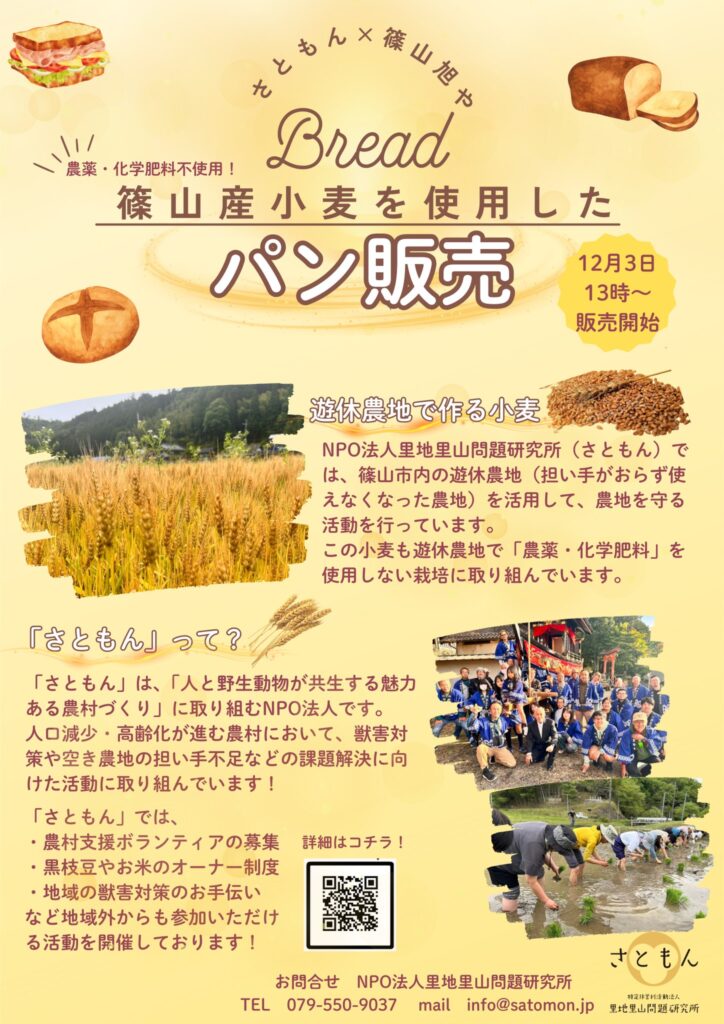 さともんが育てている小麦を使用したパンを「丹波篠山旭や」さんにて販売していただくことになりました![]()