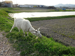 後ろで別のヤギちゃんも羨ましそうにみています。 |
