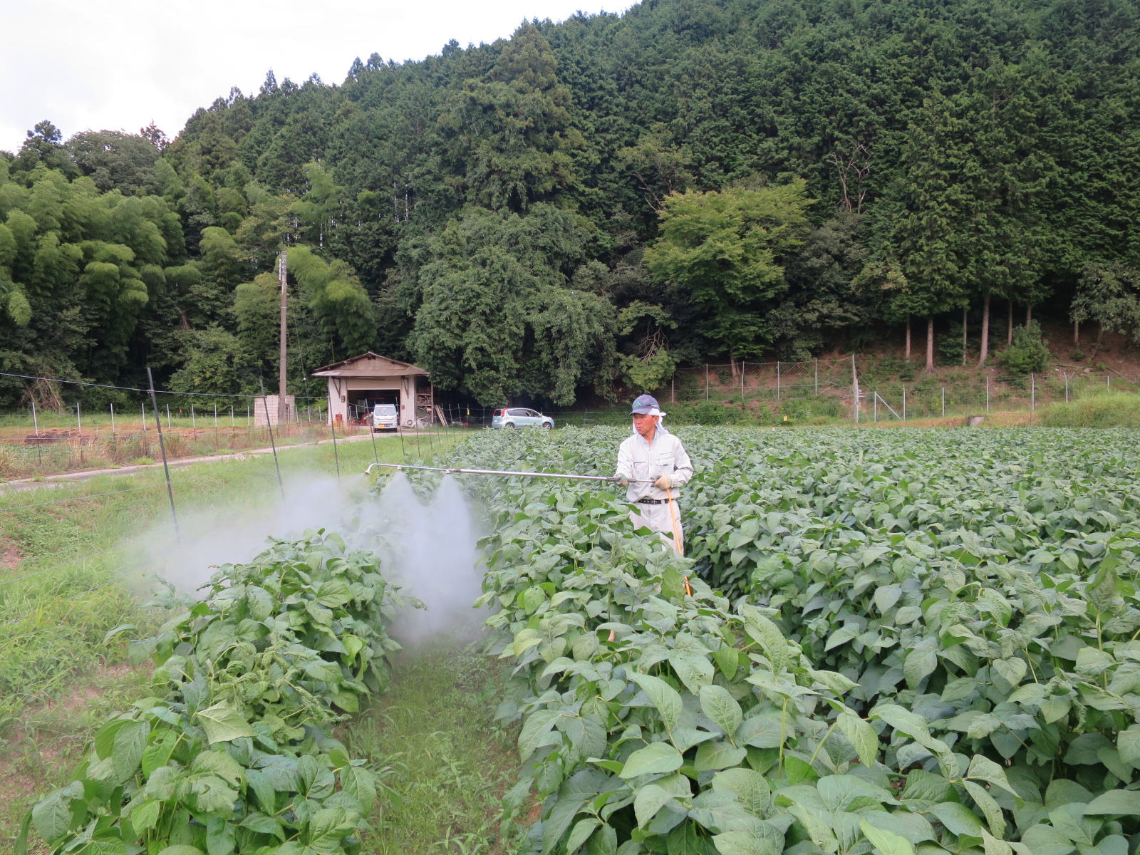 杭打ちロープ張りをした黒豆