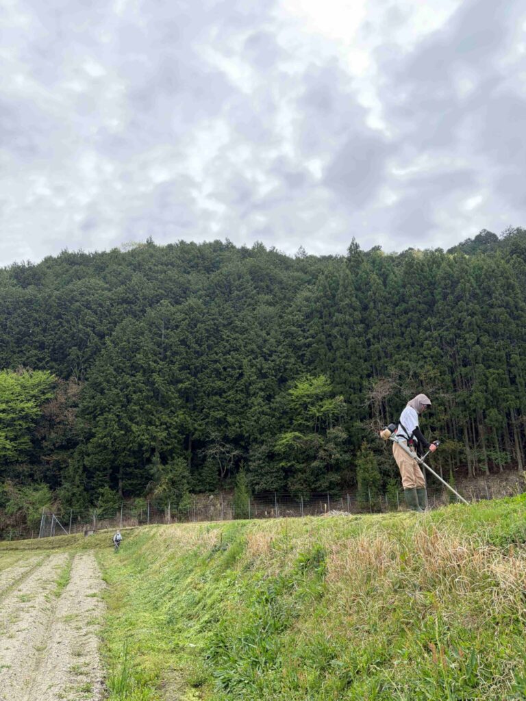 この日は川原の黒豆畑で朝から草刈りをしました。