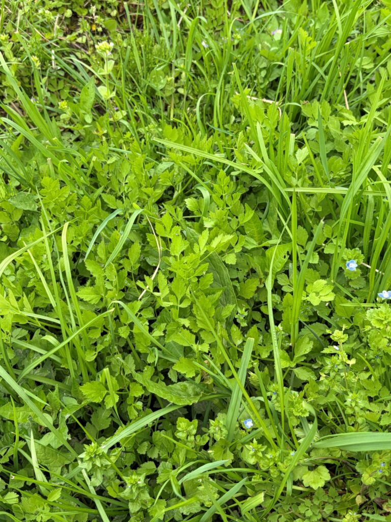畑ではセリやレンゲといった春の野草が見られ、その他の野草も負けじとぐんぐん成長しています。