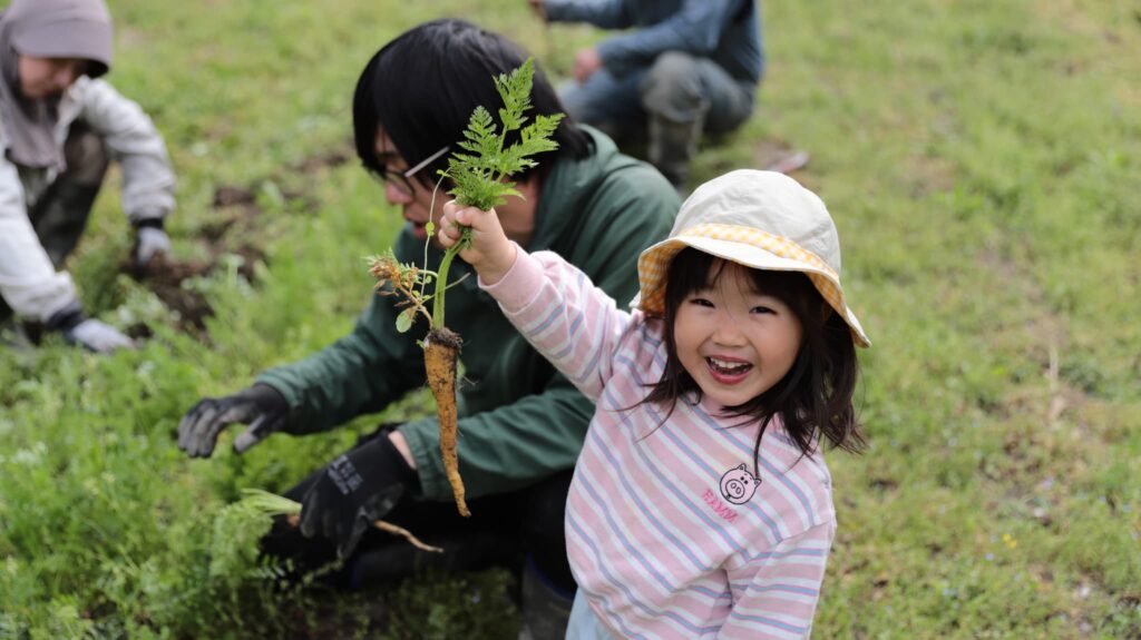 やっと一つ目のにんじんが採れたときの笑顔!