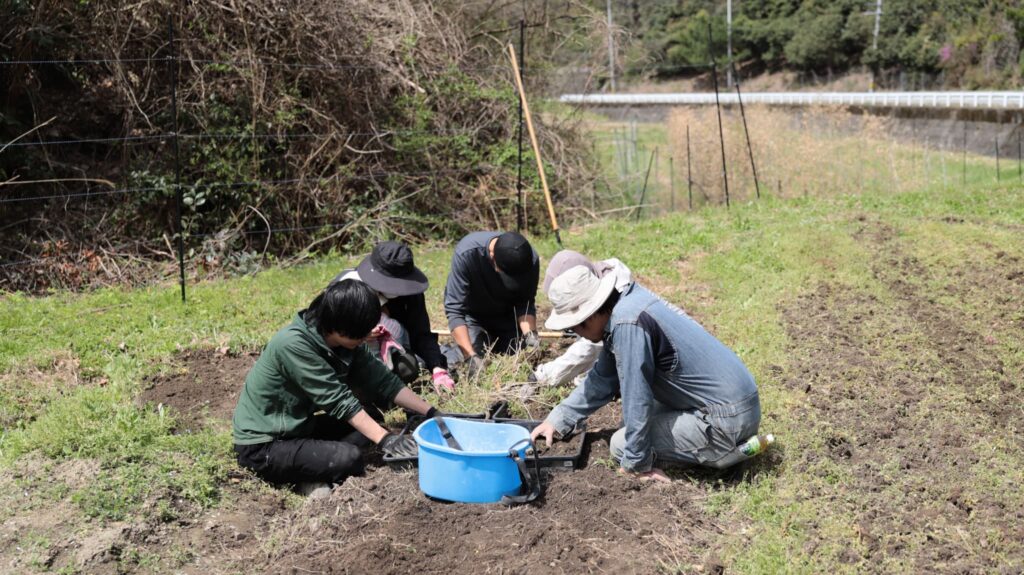 皆で交代しながら畝を作るところまで無事完了しました。